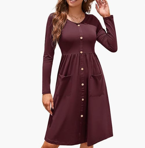 A cute and comfortable dress with pockets is a winning combination. The midi-length dress also features a button-up front, and long or short sleeves depending on the option you go with. With more than 50 colors and patterns available, you’ll surely find a perfect match for your personal style.