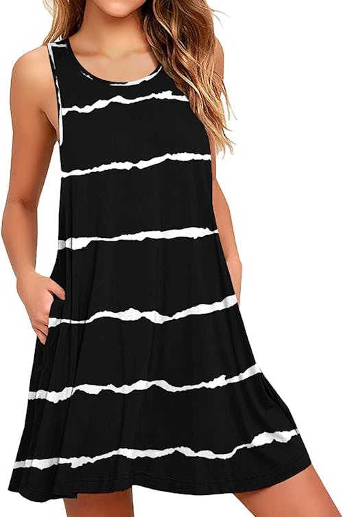 Made from a rayon and spandex blend, this swingy dress is shockingly soft and slightly stretchy — it’s one of those pieces that you can throw on when you just can’t figure out what to wear. You can rock it as a swimsuit cover-up, too. There are a wide range of patterns to pick from in the listing, including florals, stripes, polka dots, and more.