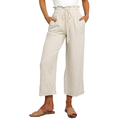 If you need to put on real pants for the day, these are the ones you want. The cropped pants feature a paper bag waist that’s elasticized for comfort — plus it allows for easy on and off. And the fabric is majorly lightweight and breathable. Choose from neutrals like this khaki color or fun pops like light green in the listing.