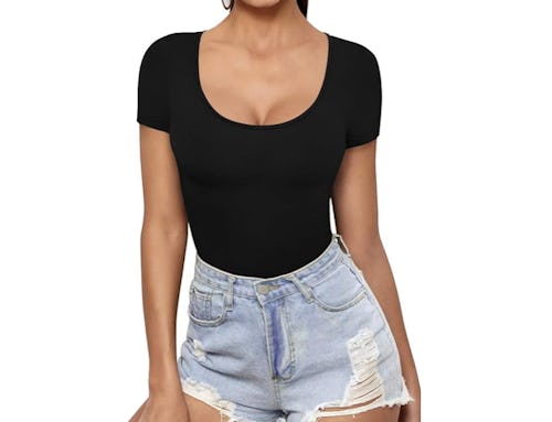For around $20, this scoop neck top is a total no-brainer. You’ll wear it with practically everything, including dressier ensembles or even with your favorite high-waisted shorts on the weekend since the longer length is perfect for tucking in. It has plenty of stretch for comfort. Pick from short- or long-sleeve options in the listing.