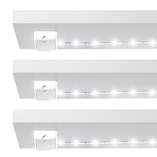POWER PRACTICAL Luminoodle Under Cabinet Lighting – Click LED Light Strip for Shelves, Kitchen Cabinets, & Furniture, 3-Pack Includes Power Button & Tape Adhesive - Warm White (2700K)
