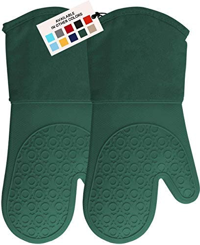HOMWE Silicone Oven Mitt, Oven Mitts with Quilted Liner, Heat Resistant Pot Holders, Slip Resistant Flexible Oven Gloves, Green, 1 Pair, 13.7 Inch