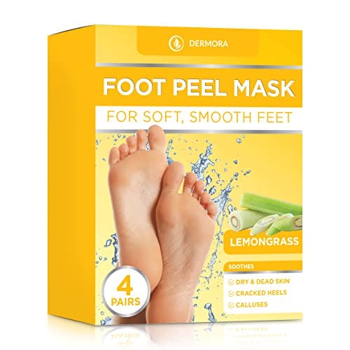 Dermora Foot Peel Mask - 4 Pack of Regular Skin Exfoliating Foot Masks for Dry, Cracked Feet, Callus, Dead Skin Remover - Feet Peeling Mask for Soft Baby Feet, Lemon Scent