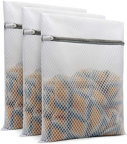 Made with a strong honeycomb pattern and a rustproof zipper, this 3-pack of mesh laundry bags will last through wash after wash. They give you an easy way to not only protect your delicates but extend the life of things like socks and gloves, lingerie, and more.