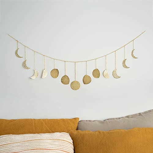Moon Phase Wall Decor Hanging Garland - 13 Gold Hammered Metal Boho Wall Decor Moon Garland 36'' - Celestial Phases Moon Decor in Bohemian Style - Moon Phases Wall Art for Home, Dorm, Bedroom, Living Room