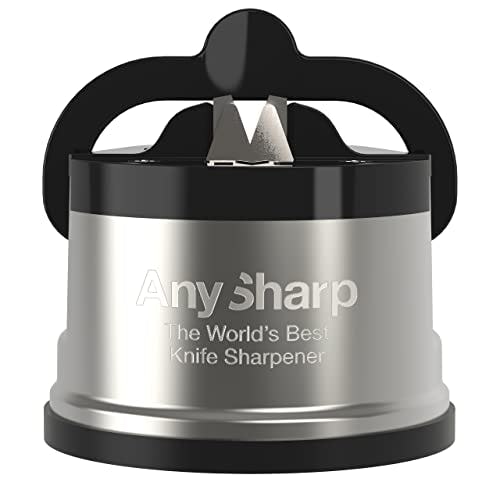 AnySharp Pro - World's Best Knife Sharpener - For All Knives and Serrated Blades - Brushed Metal