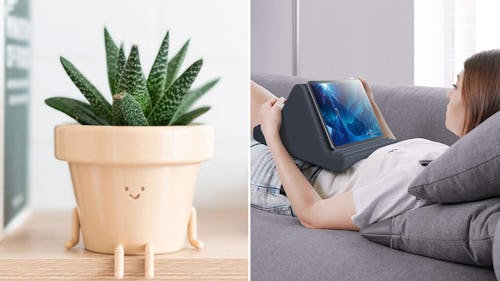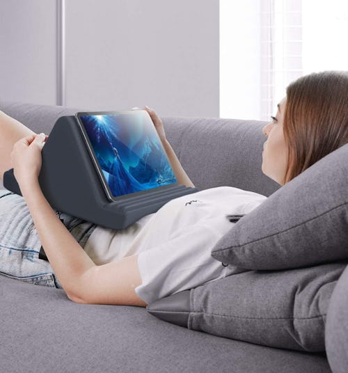 Whether this pillow tablet stand is used in bed, at a table, or on a couch, it has six adjustment options (three on each side) to give it the perfect angle no matter where you watch. It’s made of cozy pillow material and supports both vertical and horizontal viewing, making tablet viewing way more comfortable than holding the device in your hands while you watch.