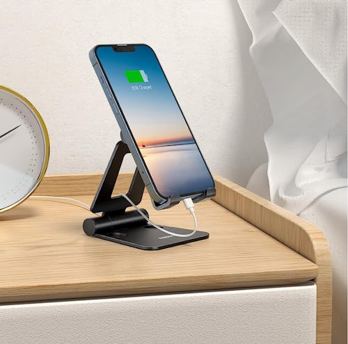 Place a smartphone on this folding stand to watch videos, play games, look at recipes, and more — the angle can even be adjusted to reach an optimum viewing angle. It’s made from sturdy aluminum with rubber pads to prevent it from sliding around, and is compatible with nearly any device ranging from 4 to 10 inches in size. It’s available in lots of colors in the listing, including red, gold, blue, green, and more.