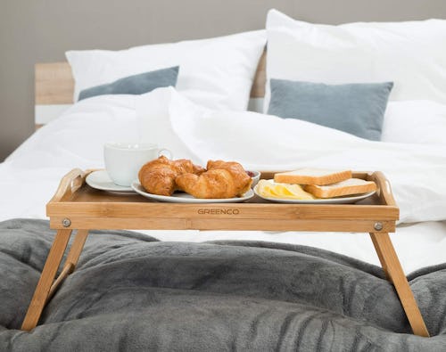 Breakfast in bed never looked so good than with this beautiful 100% bamboo tray. And not only does the natural “wood” look great, but it’s strong too, so you can bet it’s a durable choice that will last for years. Two foldable legs and raised edges with handles transform it into a practical tray that’s great for breakfast and beyond.