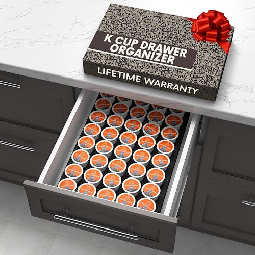 This genius K-Cup drawer organizer with 40 slots will help your morning run a little smoother since you won’t be fumbling through messy drawers or huge cardboard boxes to find the flavor you’re searching for — especially when you’re half asleep. It’s designed to fit in most standard kitchen drawers. Need more storage? There’s a two-pack also offered in the listing.