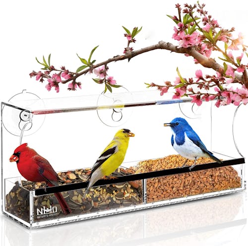 Get up close and personal with this clear bird feeder that attaches right to your window with strong suction cups to keep it firmly in place. All you have to do is fill the two bottom trays with birdseed (or another wildlife-safe feed) and watch the birds, squirrels, and other animals flock right to your lookout spot.