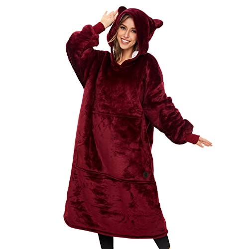 This blanket hoodie is made from the plushest material with a soft, sherpa lining, and it boasts an oversize design for maximum comfort. The roomy kangaroo pocket in the front offers a handy place to store remotes, your phone, and more — or it can be used to keep your hands warm. It even comes in kid sizes if you’re shopping for little ones.