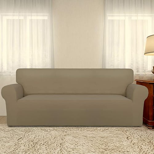 Whether you’re looking to extend the life of your couch or upgrade its look entirely, this sofa slipcover will do the trick. It conceals any already existing stains and tears while protecting your sofa from new ones. Made from a polyester and spandex blend, this medium-sized cover stretches up to 63 inches in width and will stay tight and snug without any shifting, snagging, or wrinkling. Choose from up to twenty color options.